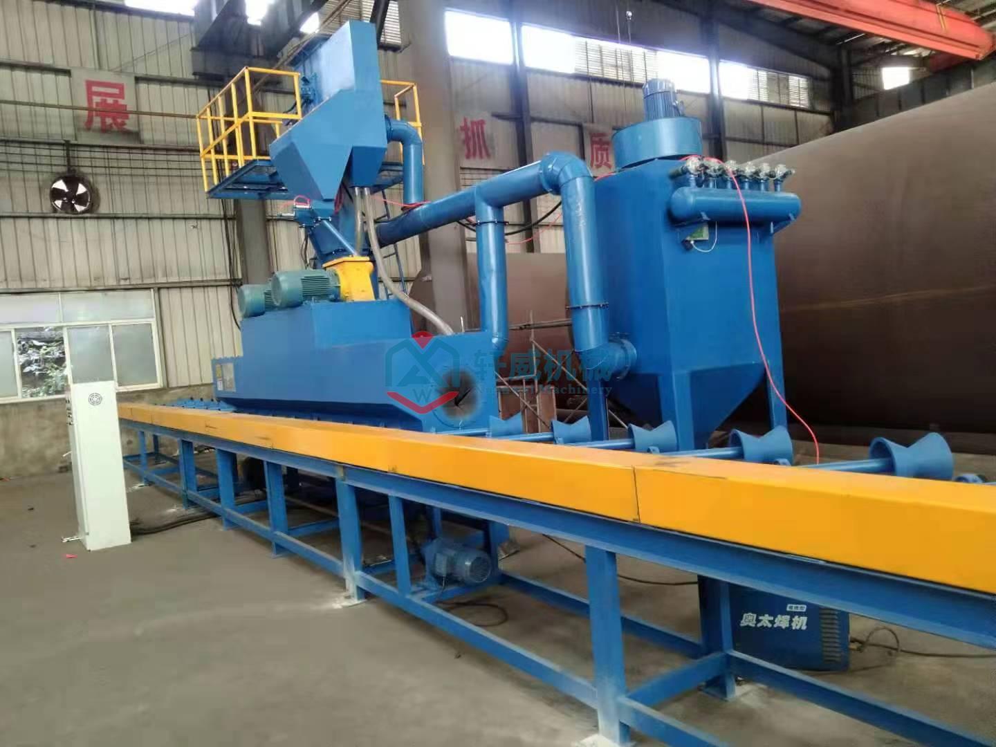 Xuanwei Machinery: Steel pipe outer wall shot blasting machine on-site:
