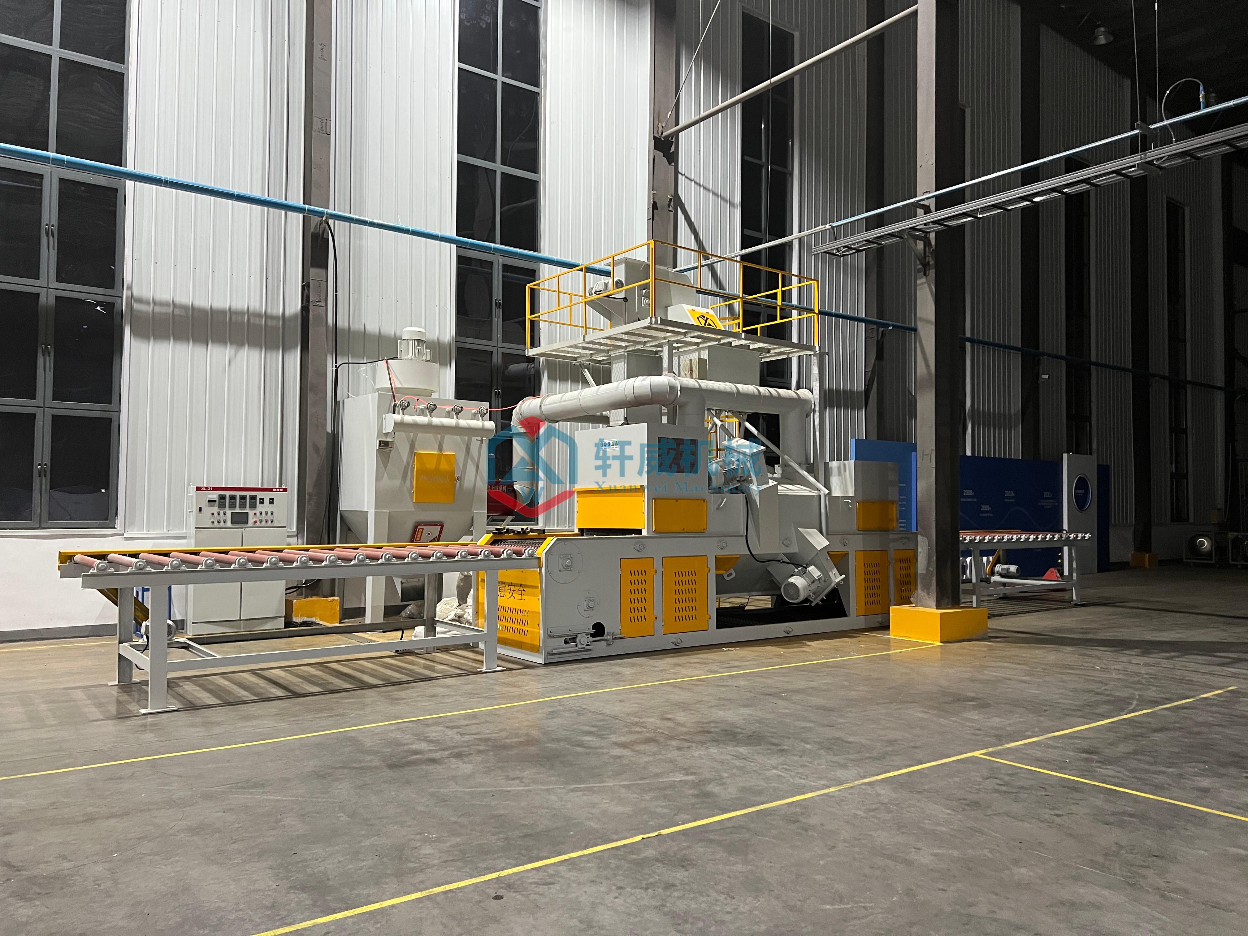 【轩威机械】网带式抛丸机现场: